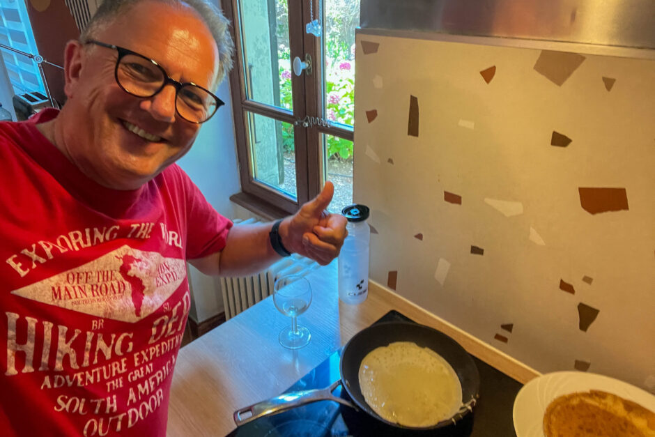 Terug naar Marsanne maken we een tussenstop bij de supermarkt. Vanavond neem ik de kookbeurt op me. Traditioneel bak ik altijd één keertje pannenkoeken. Gewoon lekker Hollands maar dan wel met een lekkere Franse “bite”…