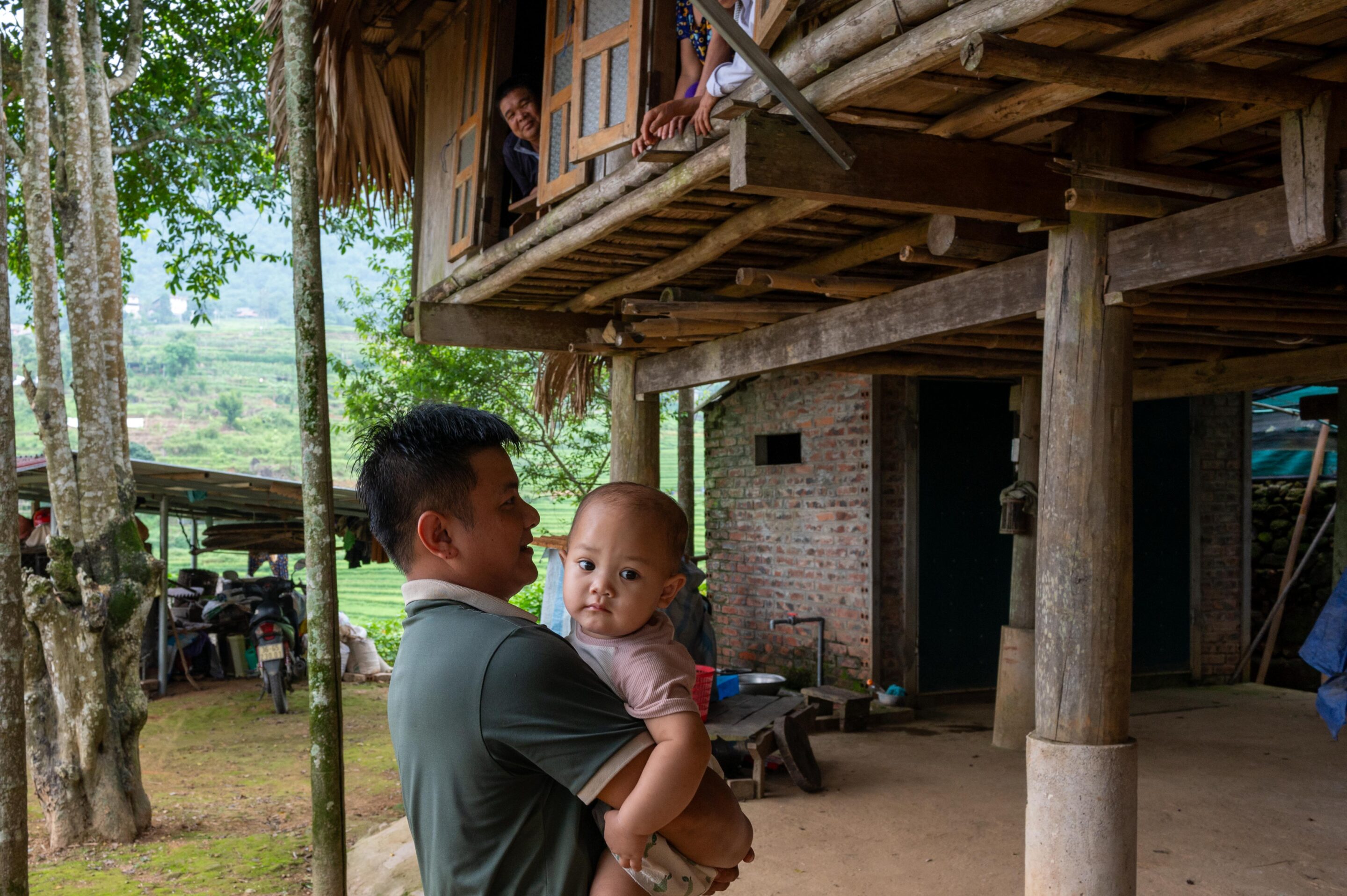 Boven aan de valei staat de boerderij waar onze gids woont en natuurlijk gaan we even bij zijn familie langs thuis om ondermeer zijn anderhalfjaar oude dochter Lien te ontmoeten.