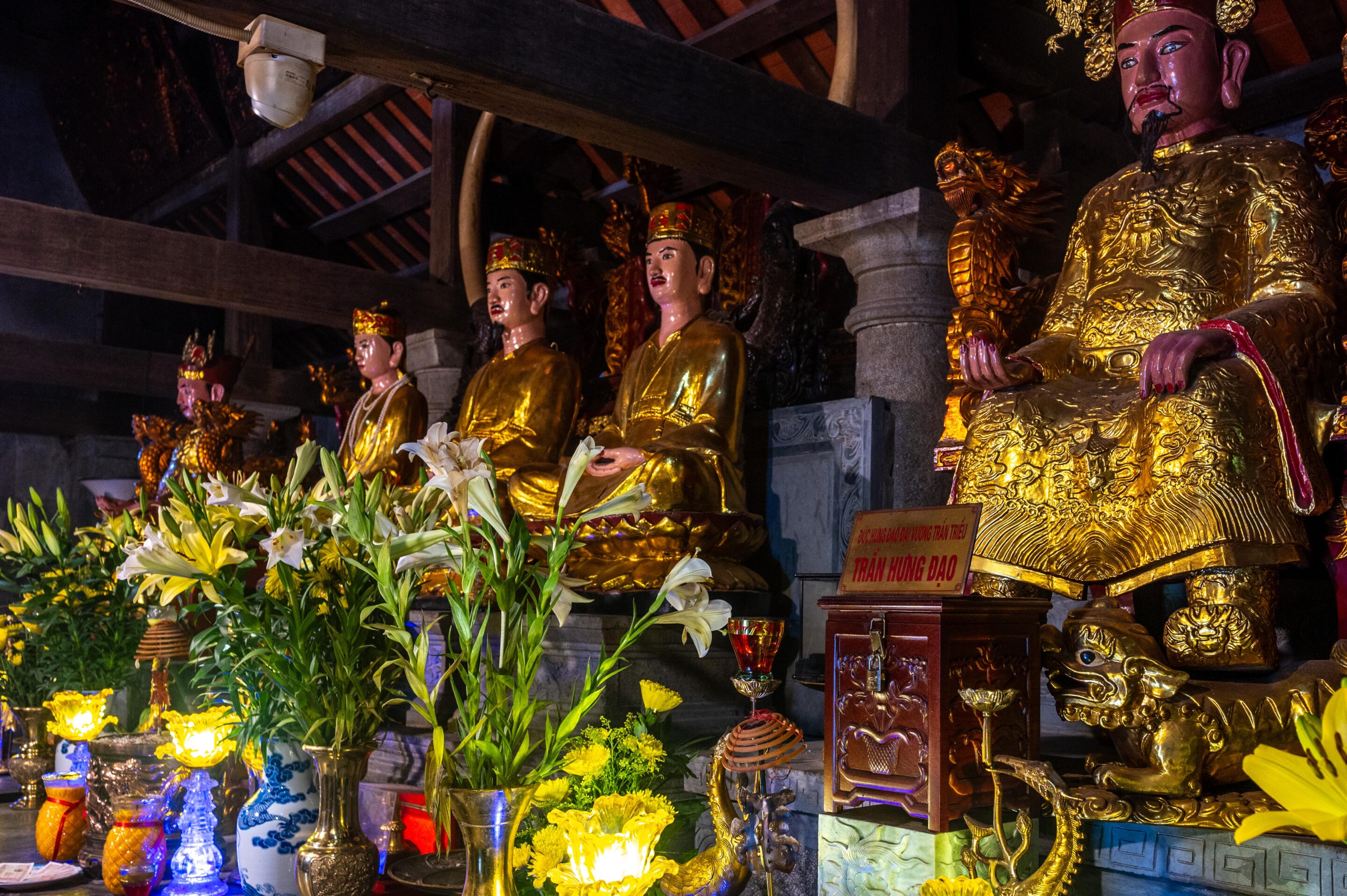 Onze volgende stop is bij de Thai Vi Tempel. De Thai Vi-tempel werd gebouwd door koning Tran Thai Tong in 1258, na zijn overwinning op de Chinese legers. Onze gids legt ons net even te lang en te uitgebreid uit hoe alles in elkaar zit met deze koning. Ze raakt onze aandacht een beetje kwijt ook mede door haar beperkte engelse woordenschat.
