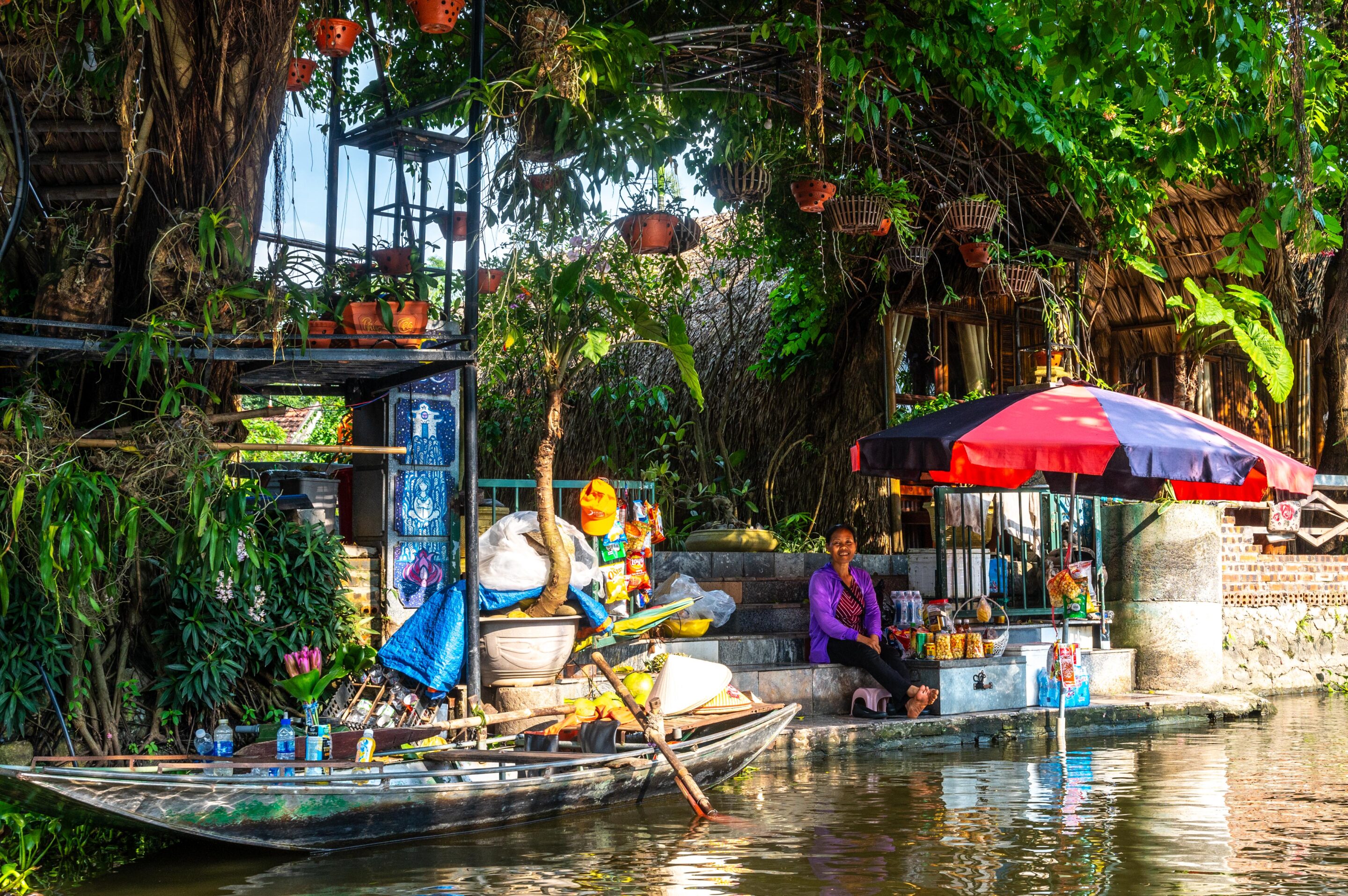 2. Wat knap roeien met je benen. Fijn dat Ineke een schone sarong bij zich had. Moest je ook een kebaya aan? Zo charmant! ben benieuwd naar de zijden rivier!