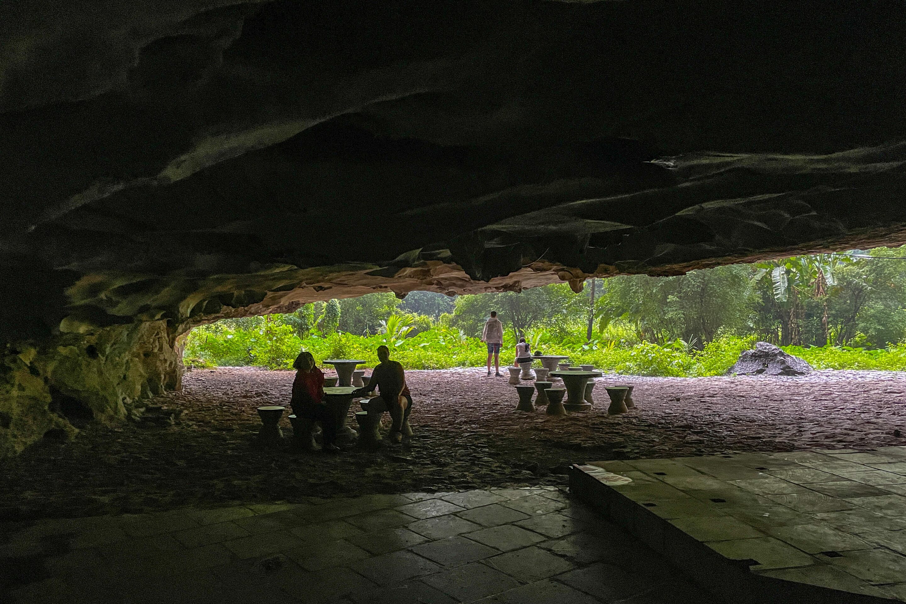 Onderweg naar beneden pikken we onze gids weer op. Beneden bezoeken we een paar grotten. Uiteraard komen we Jans en Vanessa weer tegen! Wij vervolgen verder onze weg naar de fietsen.