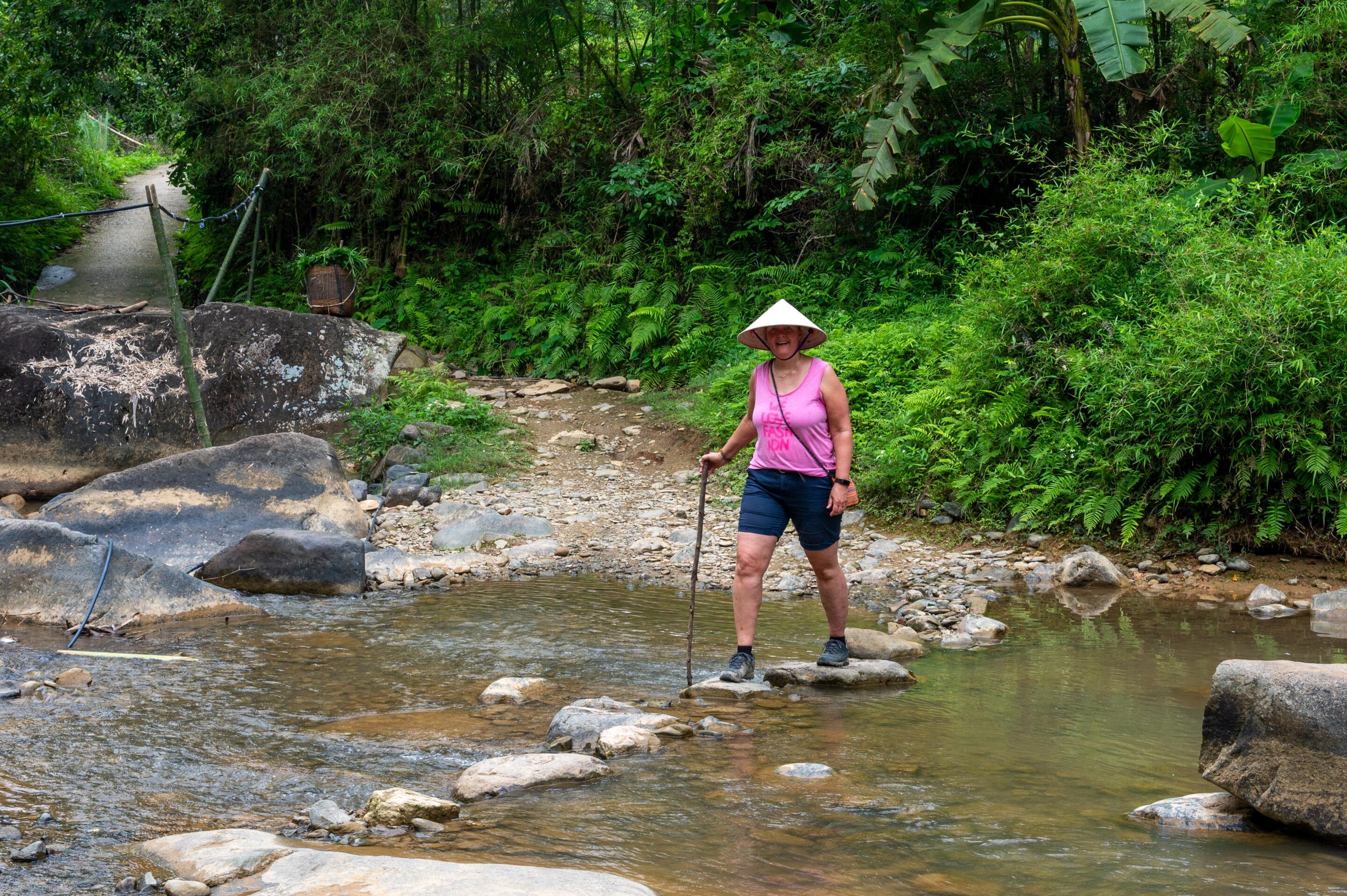 Mooi foto van Pù Luông van onder een palmblad. Ik zou daar wel een kleine hut willen hebben. En heerlijk wandelen, zwemmen en lekker koken.