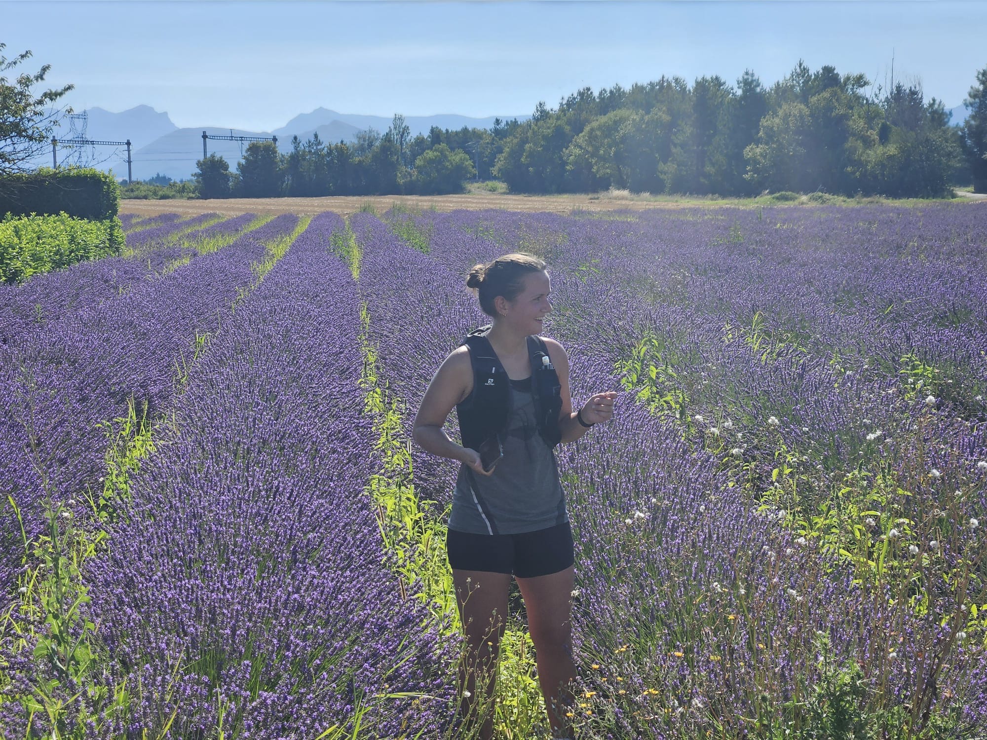 Tijdens het hardlopen kan het Jytte het even niet meer weerstaan. Er moet natuurlijk gestopt worden om een heerlijk bloeiend en geurend lavendel veld in te stappen. Als je Jytte ergens bij mee kunt maken dan is het wel de geur van lavendel. De weg terug naar Marsanne is een pittig stukje. De helling is redelijk lang maar wordt aan het einde steeds steiler. Een echte “kuitenbrekertje” zullen we maar zeggen.